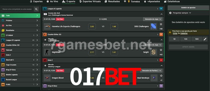 O 017bet oferece uma grande seleção de opções de apostas em e-sports com probabilidades competitivas